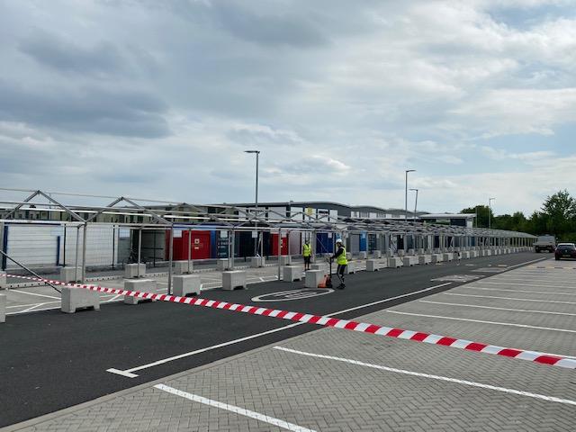 We were approached by our client to provide a queuing cover for shift workers arriving on site to be tested for Covid-19 symptoms before entering the fulfilment centre.