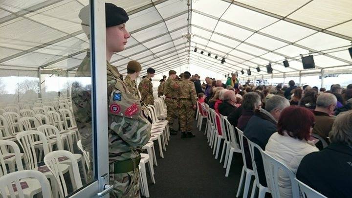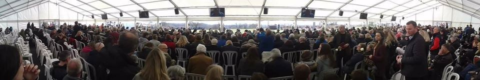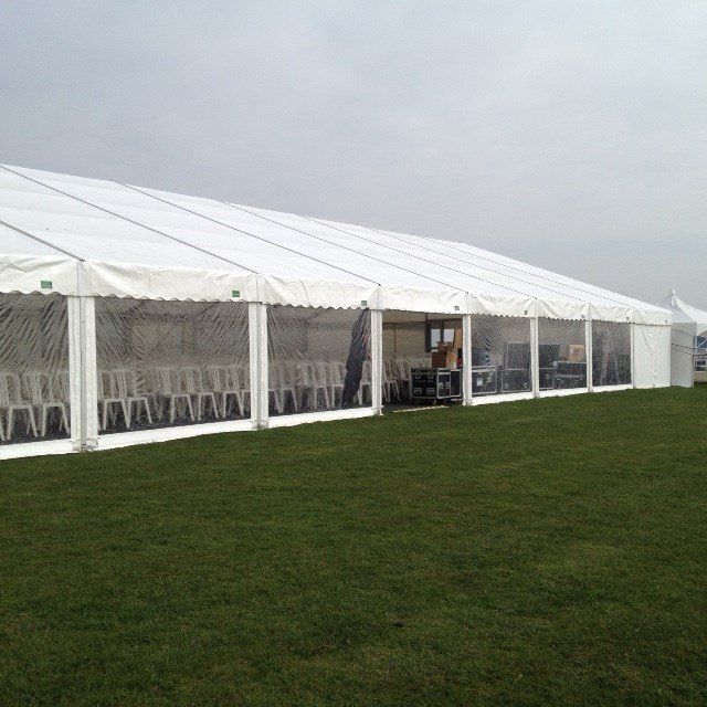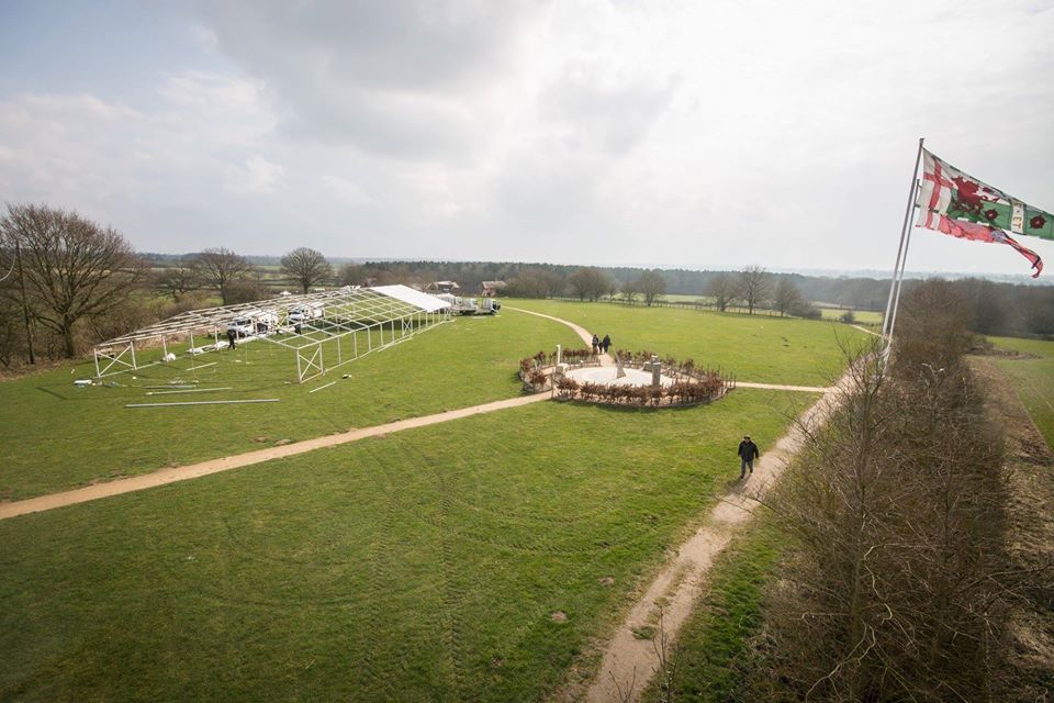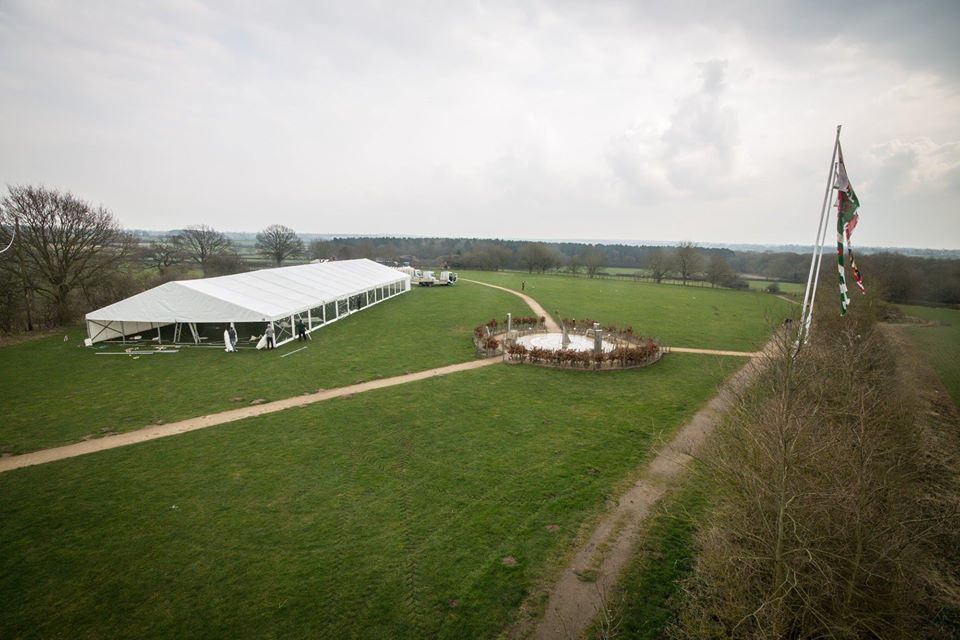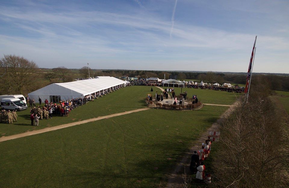 When Richard III's body was found in Leicester City Centre, it was decided to have a burial event which involved his body being taken to Bosworth Battlefield where he died. We were approached by Leicestershire County Council to provide marquee structures and facilities at Bosworth battlefield centre . A main marquee was required for 2,000 seated which was a 15m wide x 45m length with total clear sides all along one length and also and a VIP area which was a 12m x 12m structure again with total clear walling and a total clear gable end. We also supplied a generator and power distribution and furnitre. The marquee also had a hard wooden floor throughout with charcoal carpet covering.