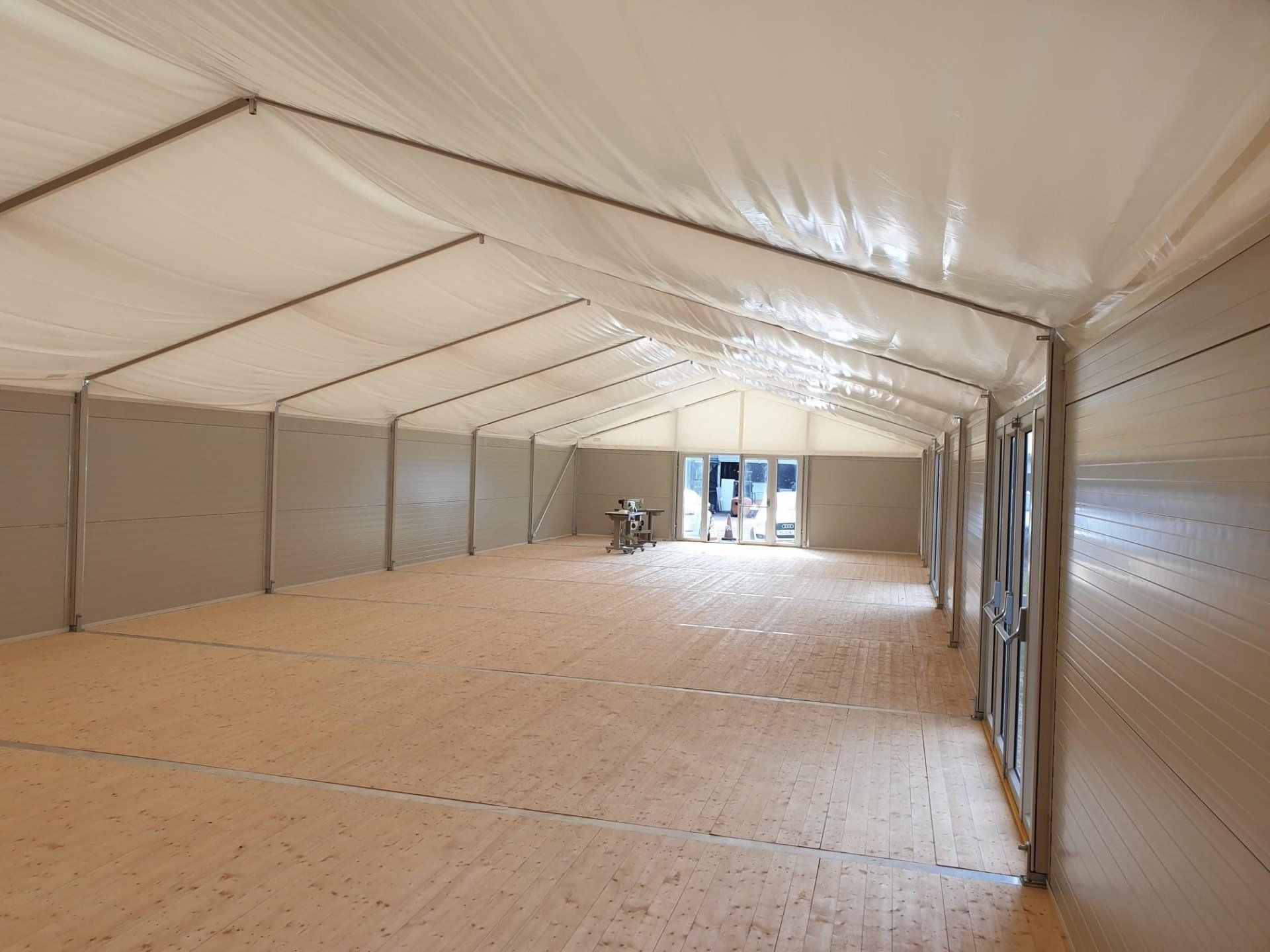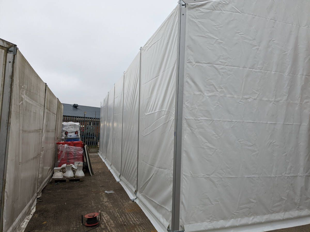 For long term hire uses such as a cafe or resturant or tempoary canteen we can offer even more insualted structures to help prevent a build up of damp and condensation by using double skinned roofs sheets and solid uPVC plastic wall panels with glazed doorways and heating systems.