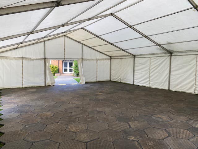The marquees can be erected on virtually any surface either using bolts on concrete and tarmac or stakes on hardcore or gravel. Concrete blocks can be used to secure the structure if drilling holes is unsuitable for an extra hire cost.